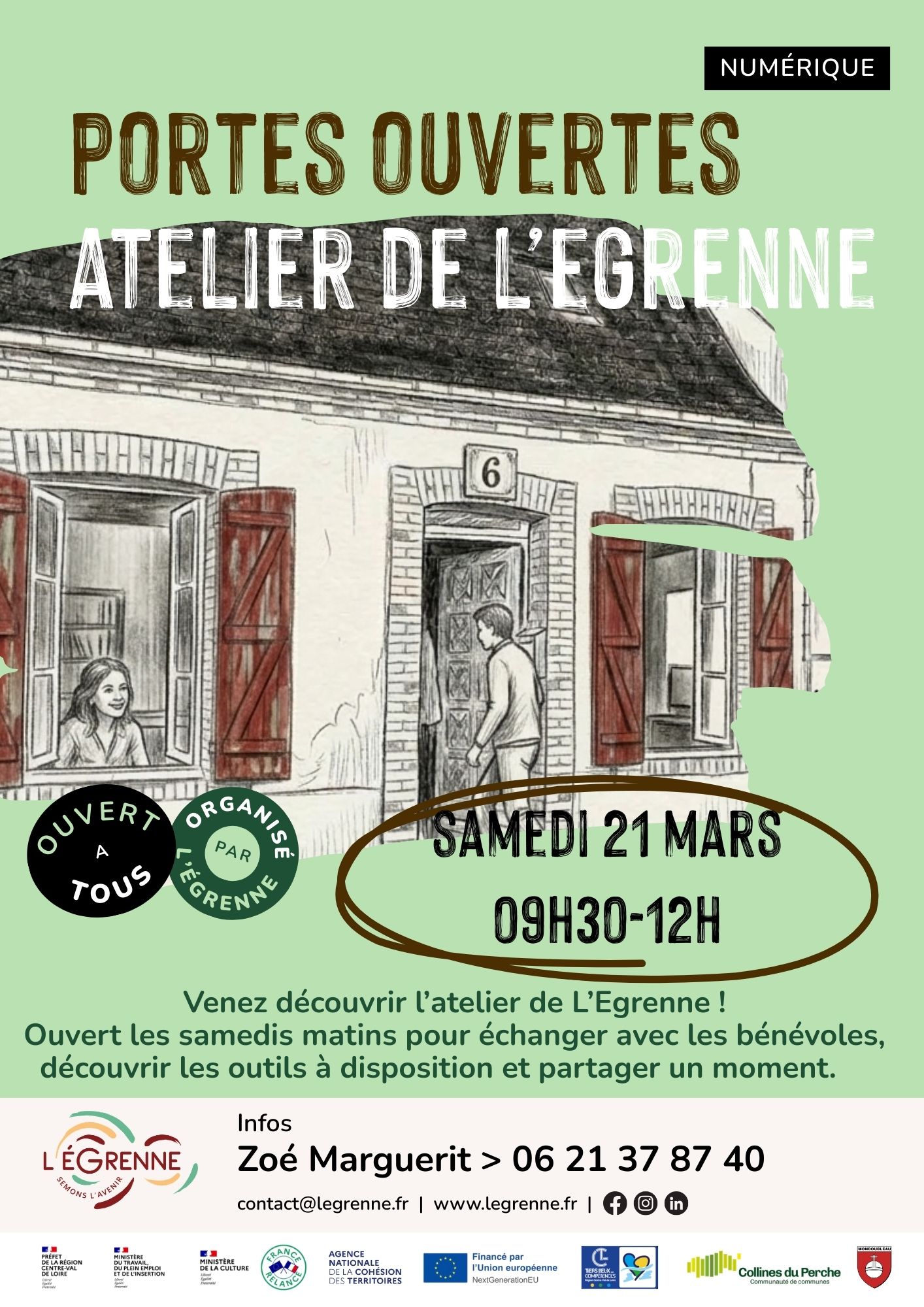 L’Egrenne c’est la volonté d’une commune rurale de 1 200 habitants de se lancer dans un projet innovant et essentiel pour ses habitants. Face aux difficultés d'accès à la formation, L'Egrenne propose aux entreprises, comme aux habitants, de féderer les besoins de compétence et d'organiser sur Mondoubleau et sa région les formations adaptées.